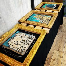 住宅を建てる際に出る木材の端材を特製のオリジナルキャンバスに加工してご提供。 そのキャンバスにアーティスト様が絵を描くという初めての試みでした。