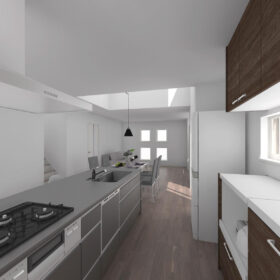 南区東霞町【オールステンレスのアイランドキッチンと吹抜のあるお家】