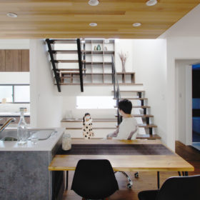階段下空間を活用し、キッチン横にうれしい収納スペース。
