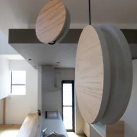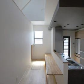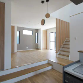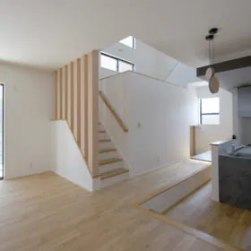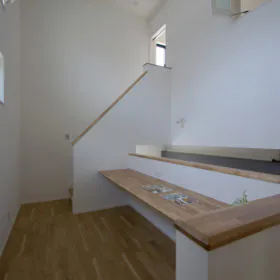 化粧柱が印象的な階段・スキップフロアにもカウンター