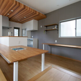 サンクンキッチン&造作ダイニングテーブルが印象的なお家