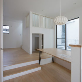 造作のダイニングテーブル&堀込風カウンターも印象的。