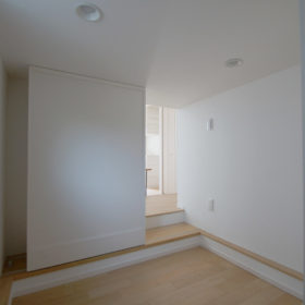 下の空間はスライドする本棚で隠し部屋風に。