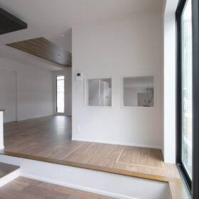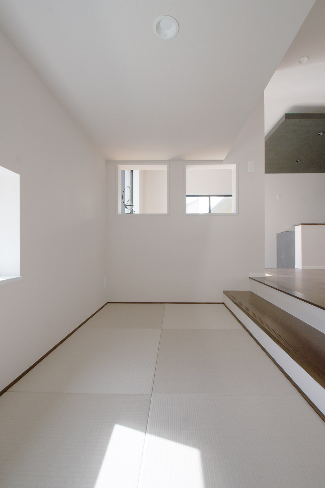 階段スキップフロア下部分は一段下がったタタミコーナーにし、ほどよい開放感と閉鎖感の落ち着けるスペースを。