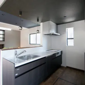 ユニークで遊び心のある間取りを、ブラックや濃い木目カラーをメインに上質にな空間に仕上げたお家です。