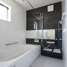 LIXIL『エコカラット』のアクセントウォールは、折り上げ天井と間接照明でより上質に飾られています。