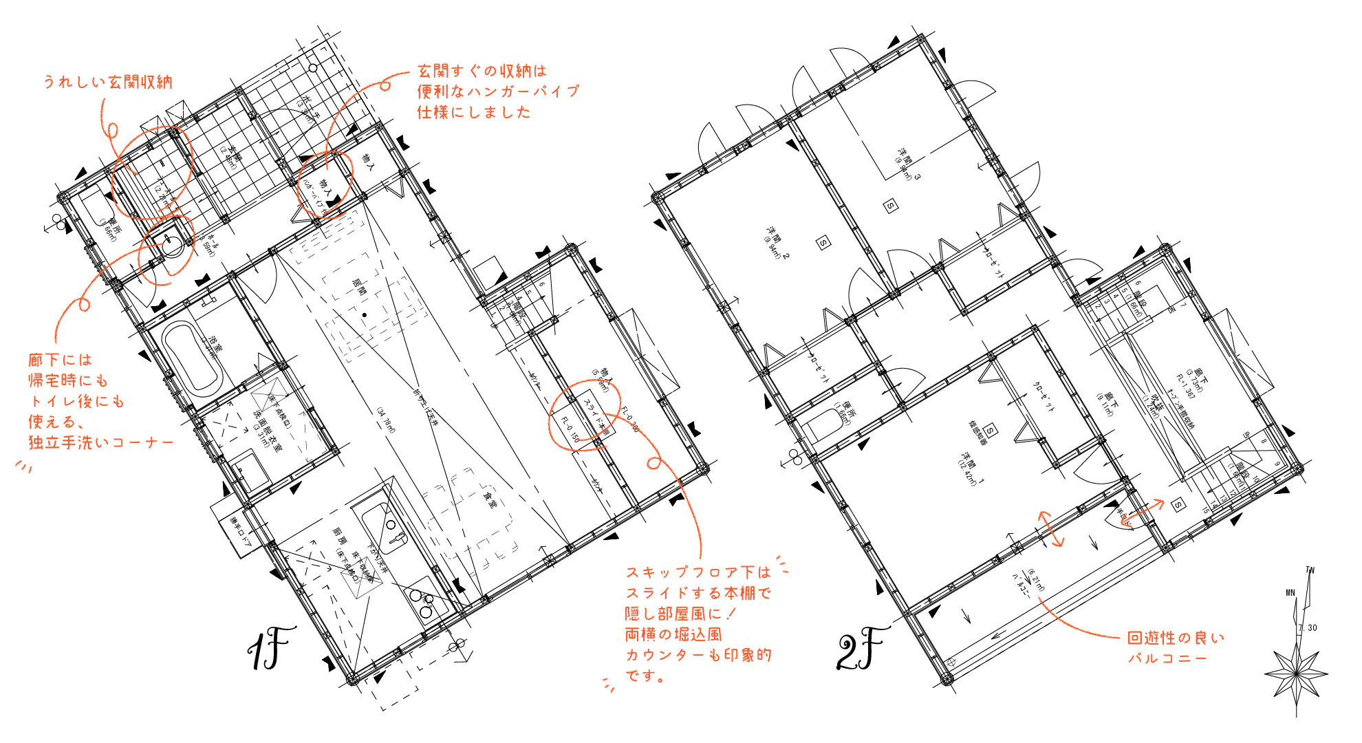玄関にはうれしいシューズクロークや手洗いスペースを。