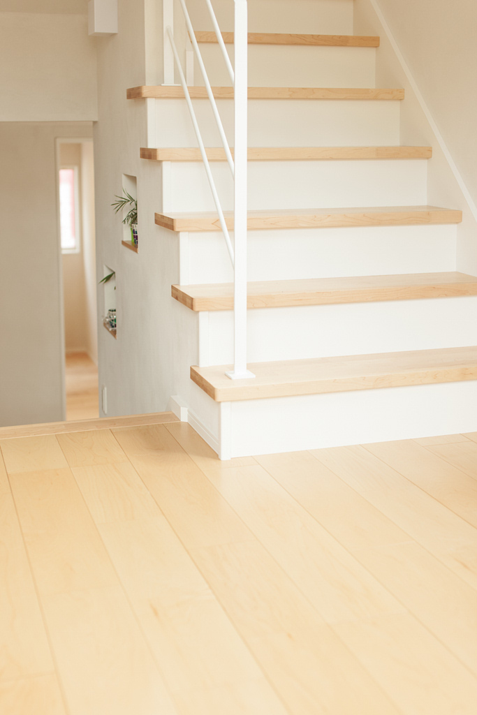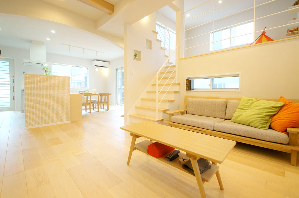 無垢の床、珪藻土の塗り壁、自然素材を使った明るくナチュラルで開放的な雰囲気など……
